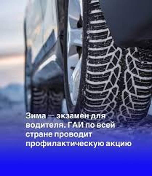 С 1 по 5 декабря в целях подготовки автомобилей к эксплуатации в зимних условияхпроводиться республиканская профилактическая акция ´ Зима - экзамен для водителя !Госавтоинспекция напоминает: с 1 декабря по 1 марта зимняя резина на всех колесах автомобиля - обязательный атрибут безопасности.За неиспользование на транспортном средстве зимних шин пред .