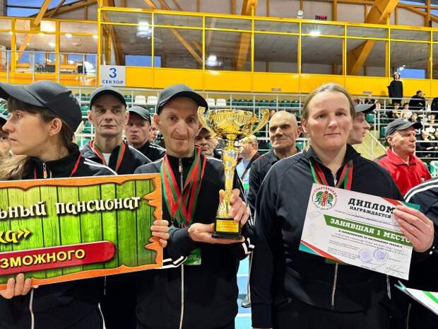 Команда социального пансионата ´Каменка´ - победитель областной спартакиады ´Спорт для всехВ спорткомплексе ´Олимпиец´ наградили победителей областной спартакиады ´Спорт для всех´ среди граждан, проживающих в социальных пансионатах Могилевской области.Участие в спартакиаде приняли более 100 человек из девяти социальных пансионатов региона.
