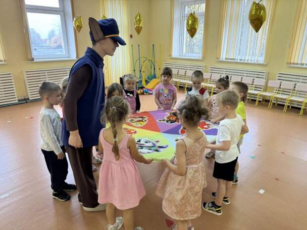 Сегодня в нашем детском саду Гонщик из Щенячего патруля провёл с воспитанниками увлекательное занятие по безопасности. Гонщик научил наших малышей, как правильно вести себя на дороге, как звонить в службу спасения и, конечно же, как быть настоящими супергероями, заботясь о себе и других!Дети были в восторге от общения с любимым персонажем и с удово .