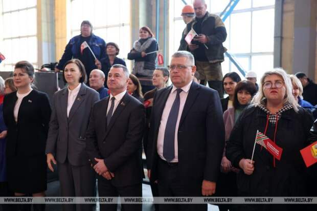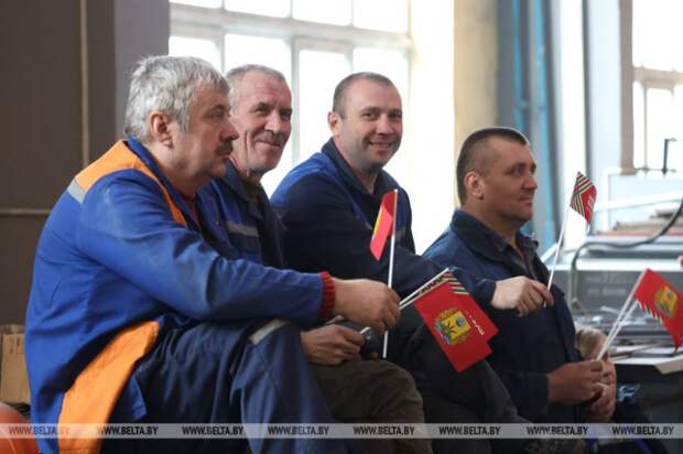 15 ноября, Бобруйск /Корр. БЕЛТА/. На Бобруйском заводе крупнопанельного домостроения в рамках республиканской акции ´Марафон единства´ впервые реализован необычный формат - концерт прямо в цеху. Заводчан и гостей предприятия поздравили заслуженные и народные артисты Беларуси, сделав будний день ярким и незабываемым, передает корреспондент БЕЛТА.