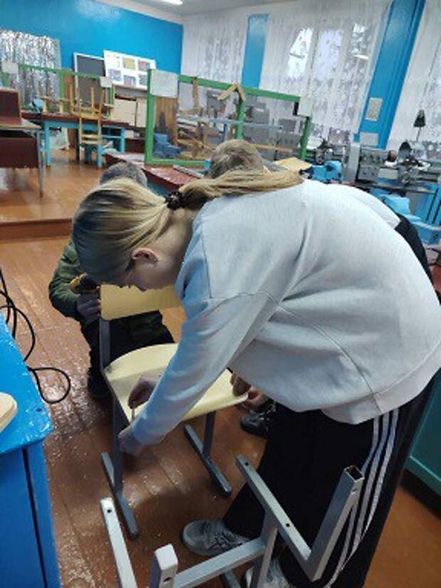 Учащиеся Глушанской средней школы продолжают работу в рамках временной трудовой занятости: ремонтируют школьную мебель ... ...