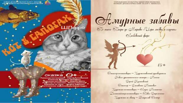 14 февраля в 12:00 - сказка ´Кот в сапогах´ - история о том, как дружба и преданность умеют творить настоящие чудеса.14 февраля в 18:00 - любовный фарс ´Амурные забавыАмурные забавы´ - дерзкая, полная страсти и искрометного остроумия интерпретация классической пьесы Пьера де Мариво. Это не просто комедия положений, а настоящий интеллектуальный флир .
