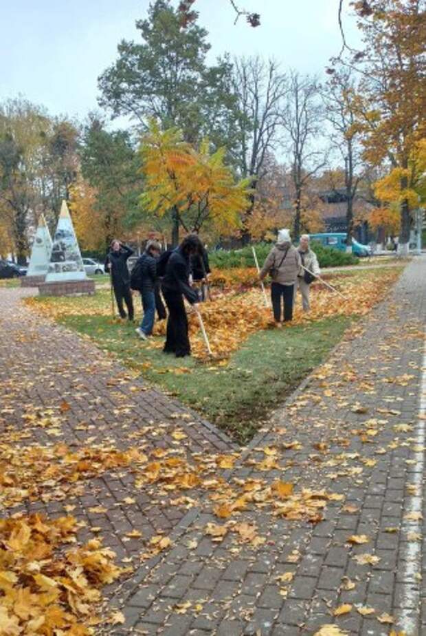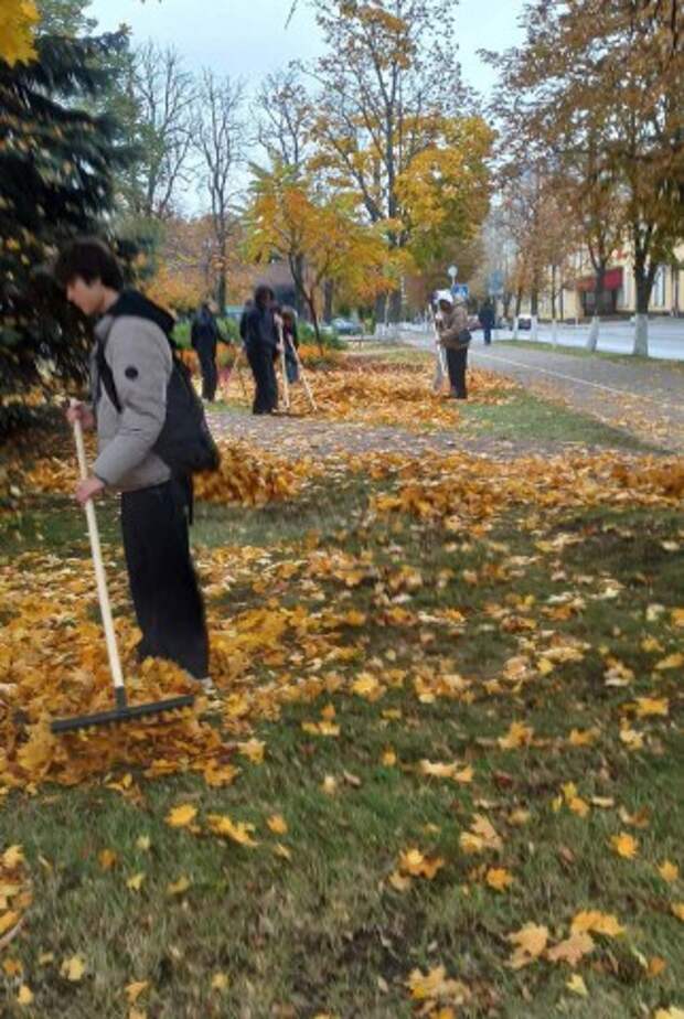 16.10.2025 г.учащиеся учебной группы 323 на уборке листьев на зелёной зоне у памятника воинам- интернационалистам в рамках наведения санитарного порядка на территории Ленинского района г.Бобруйска ... ...