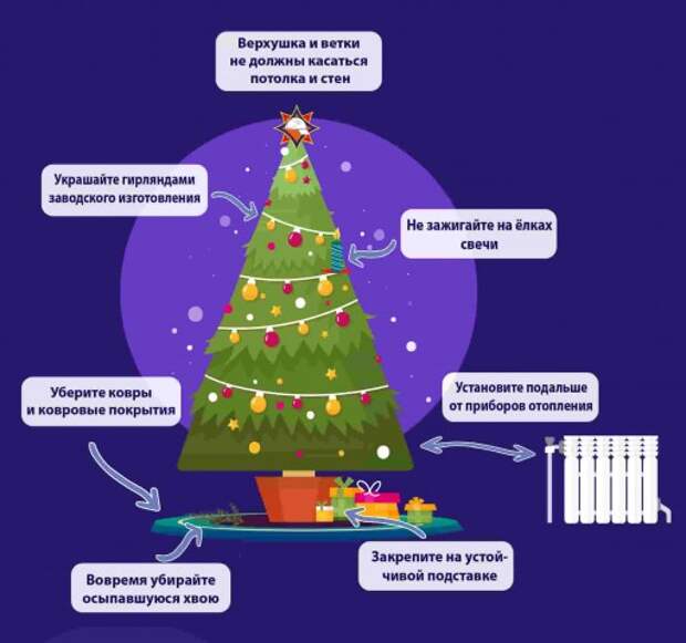 Ни один Новогодний праздник не обходится без главной ´виновницы´ торжества - елки. Не забывайте, что даже самое маленькое возгорание на елке может обернуться пожаром. Для того чтобы этого не произошло, придерживайтесь простых правил:Если Вы решили ставить в доме ´живую´ елку - не забывайте своевременно убирать осыпающееся иголки, так как они имеют .