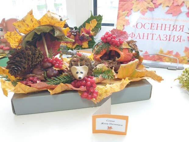 Выставка детских творческих работ на тему ´Осенняя фантазия´В нашем детском саду стало доброй традицией проводить выставки совместных работ родителей и детей. Такие мероприятия сближают родителей и ребёнка, позволяют им не только выразить свой творческий потенциал, но и демонстрировать свои таланты, воспитывать добро и человеческое отношение ко все .