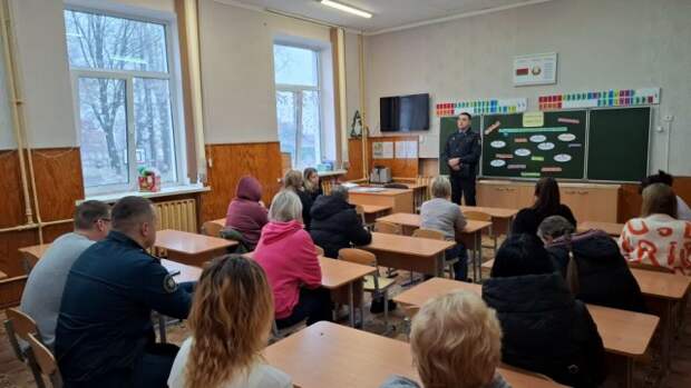 Перед законными представителями учащихся выступили Ивинский К. А., начальник караула ПАСЧ-7, Кирющенко Ю. С., врач психиатр-нарколог, Литовкин Д. Б, инспектор ДПС ОГАИ, Ковальков П. П., главный врач УЗ БГДБ ... ...