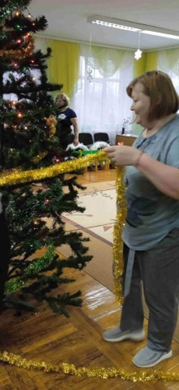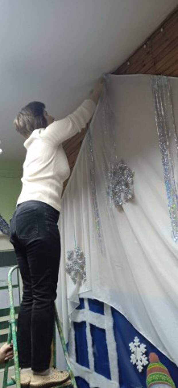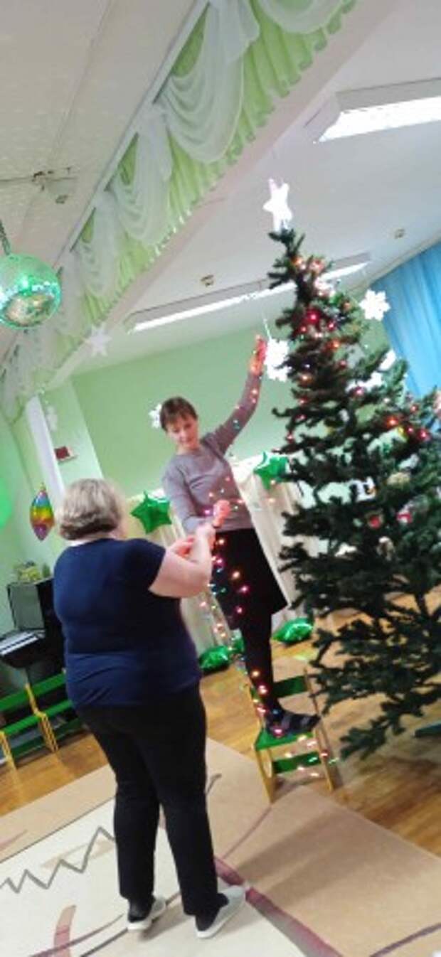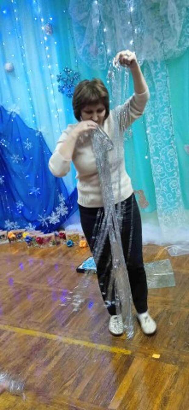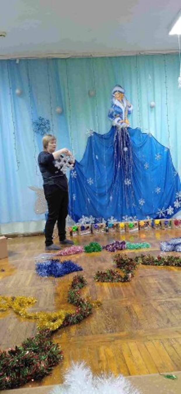 Идут последние приготовления музыкального зала к Новому году - это создание волшебной атмосферы с помощью тематического декора, света и звука: использование органзы, гирлянд, тематических фигур, светодиодных элементов для эффекта сказки, ведь зал должен радовать и удивлять малышей, подчеркивая эстетику и волшебство Нового года .
