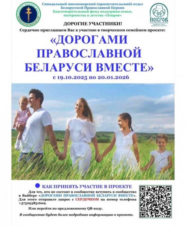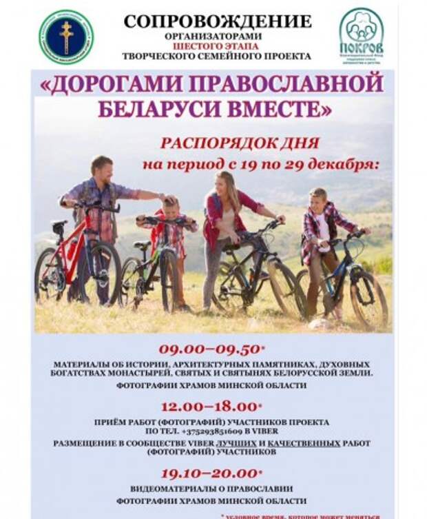 6-й этап проходит с 19 по 29 декабря. Этап посвящен духовным достопримечательностям и святыням Минской области.Присоединиться к проекту можно даже на последнем этапеПроект для всех, кто интересуется Православием, белорусской историей и культурой. Участие позволит семьям больше узнать об архитектурных памятниках, духовных богатствах монастырей, свят .