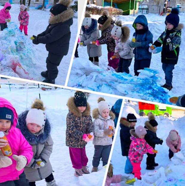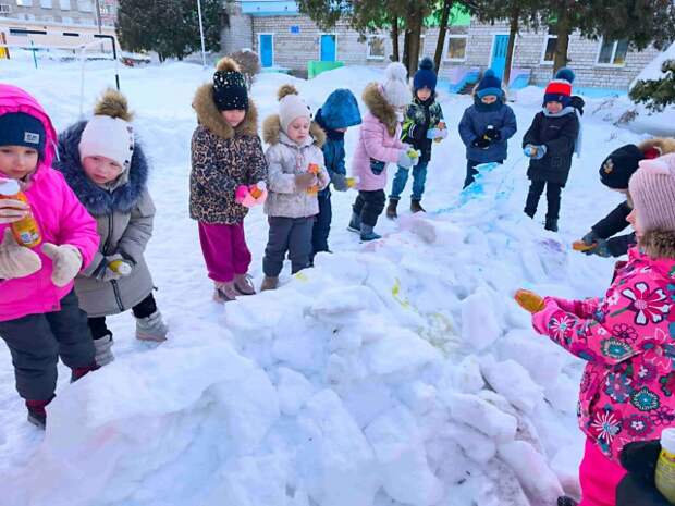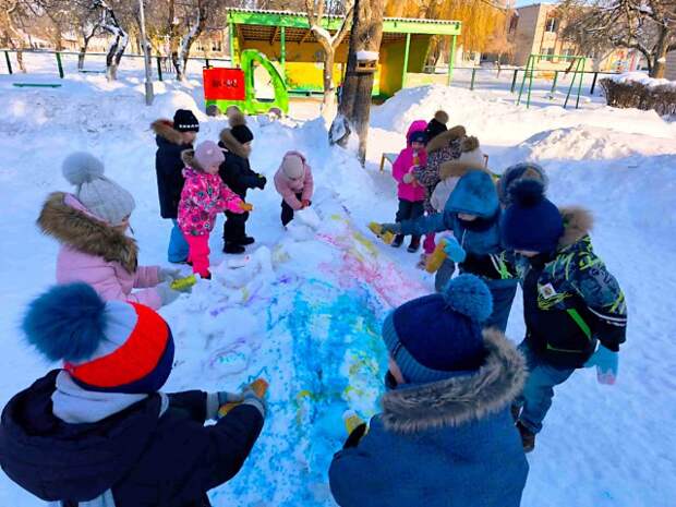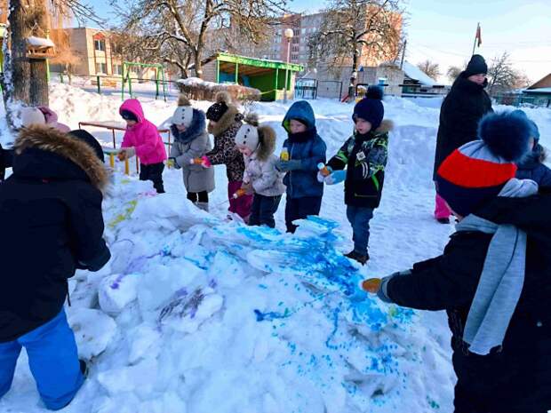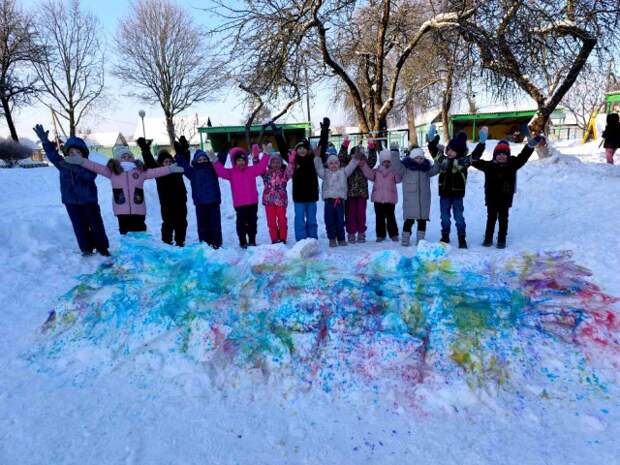 Сегодня воспитанники старшей группы №5 вместе с воспитателем Натальей Владимировной Корзун весело провели время на прогулке. Снег, который ещё недавно был белоснежным, теперь раскрашен яркими красками - ребята выразили свои эмоции, р ... ...