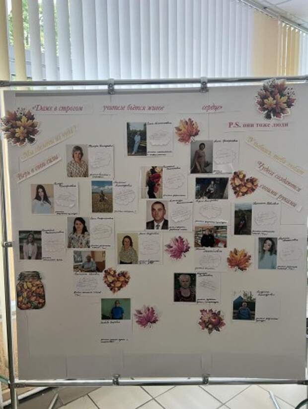 Ко Дню Учителя в нашей школе появилась замечательная инициатива, которая позволила взглянуть на наших педагогов по-новому! Педагог-организатор, Макарченко Марина Михайловна, создала оригинальный стенд под названием ´Даже в строгом учителе бьётся живое сердце´.На стенде размещены фотографии всех педагогов нашей школы, а рядом с каждой фотографией - .