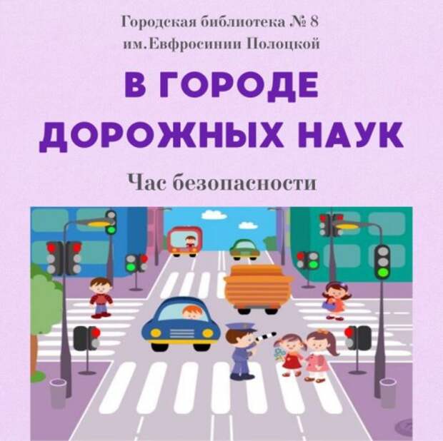В городской библиотеке № 8 имени Евфросинии Полоцкой для учеников начальных классов осеннего школьного лагеря ГУО ´Средняя школа № 18 г. Бобруйска´ прошел час безопасности ´В городе дорожных наук´. Ребята узнали о том, что такое ´Правила дорожного движения´, почему важно их соблюдать, почему дорога не место для детских игр, также дети познакомились .