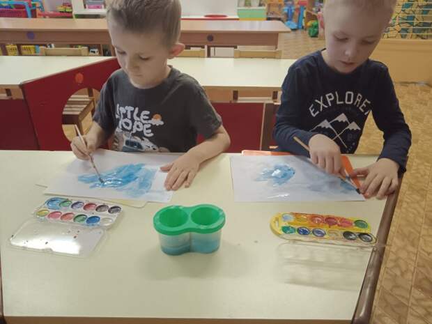 Невероятная атмосфера творчества царила у нас сегодня. Наши маленькие художники, словно настоящие волшебники, перенесли белоснежную зиму на чистый лист бумаги!Мы предложили ребятам кисточки, краски и немного воображения. И вы не поверите, какие шедевры получились!Синий-синий иней: сначала мы создавали фон - глубокое синее небо и нежно-голубой снег.